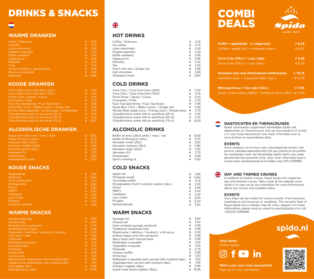 Menu during the harbour tour